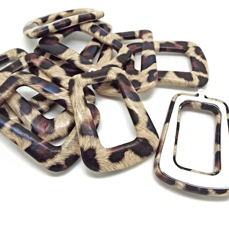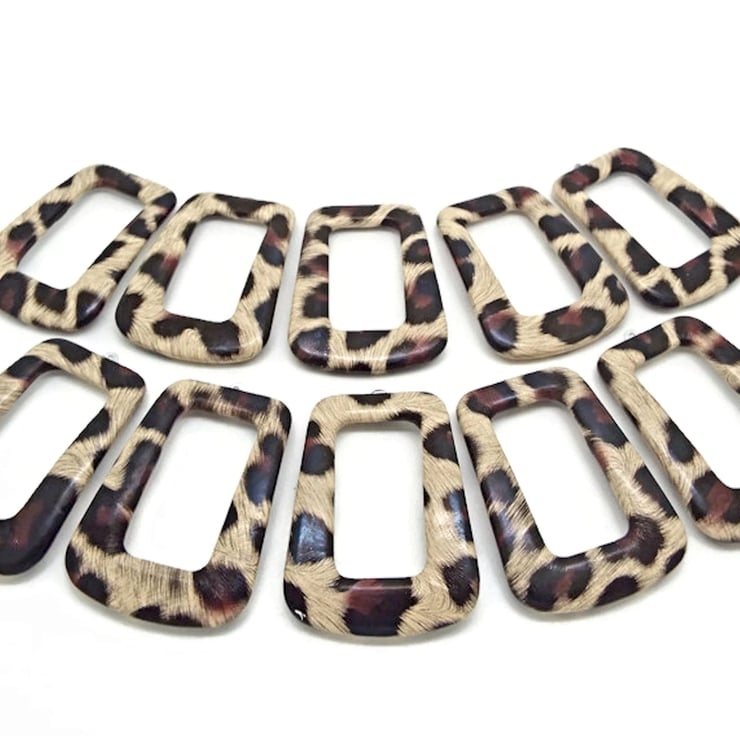 Set of 10 Faux Leather Animal Print Trapezoid Earring & Necklace Pendants with an Aluminium Base
