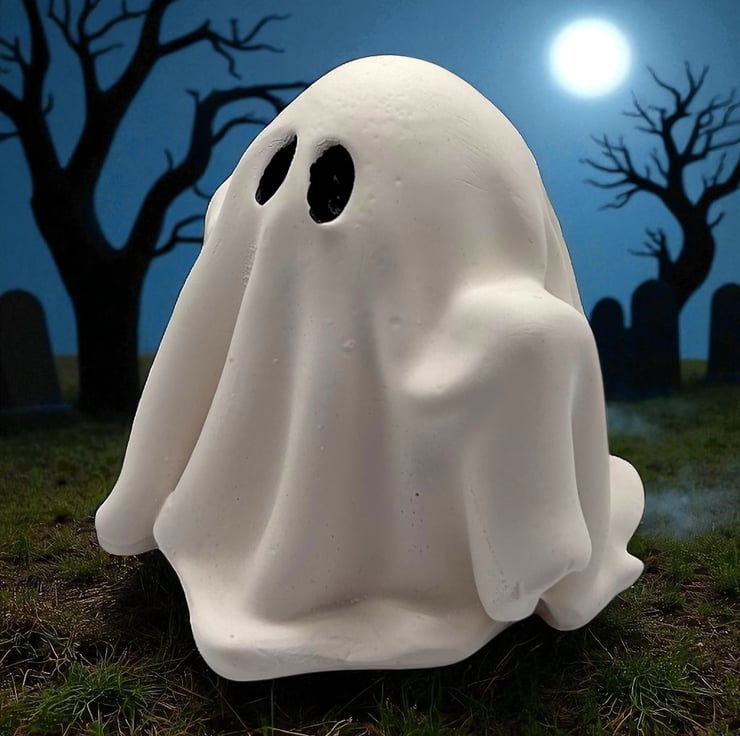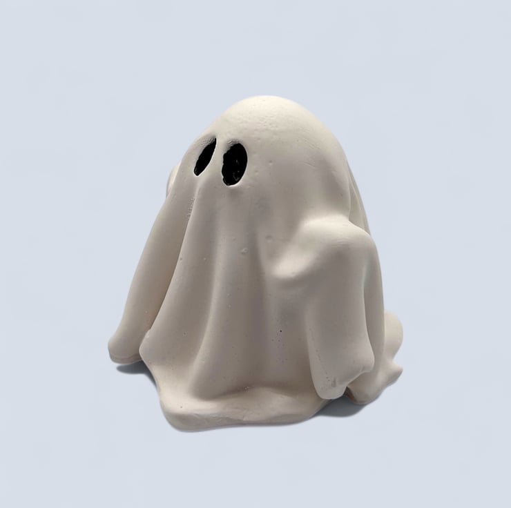 With the eyes painted in, the plain white takes on a presence that feels both familiar and uncanny — the kind of ghost you’d expect from childhood stories, yet made tangible to hold in your hand. It’s simple, timeless, and quietly striking.