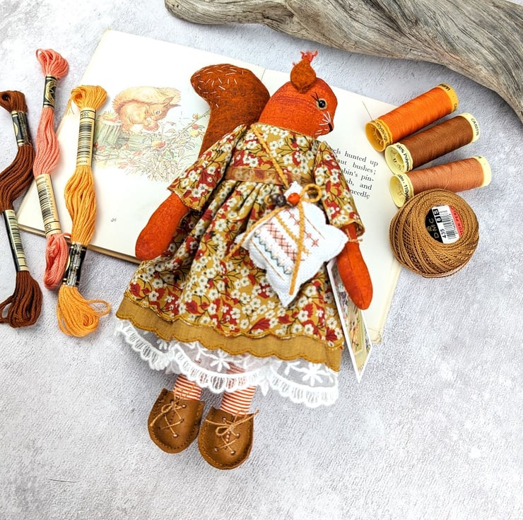 A new pattern for autumn 2025 a little red squirrel with tiny fluffy ears. They are slightly larger than the mice but not as large as the foxes.
