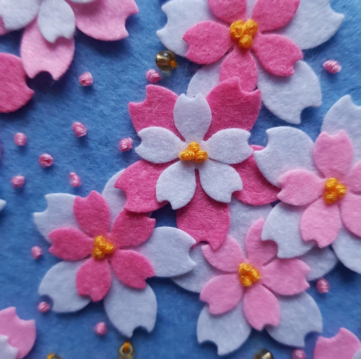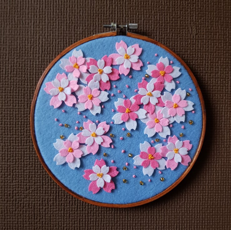 Blossom Layered Felt Flowers with hand embroidery-  wall decoration