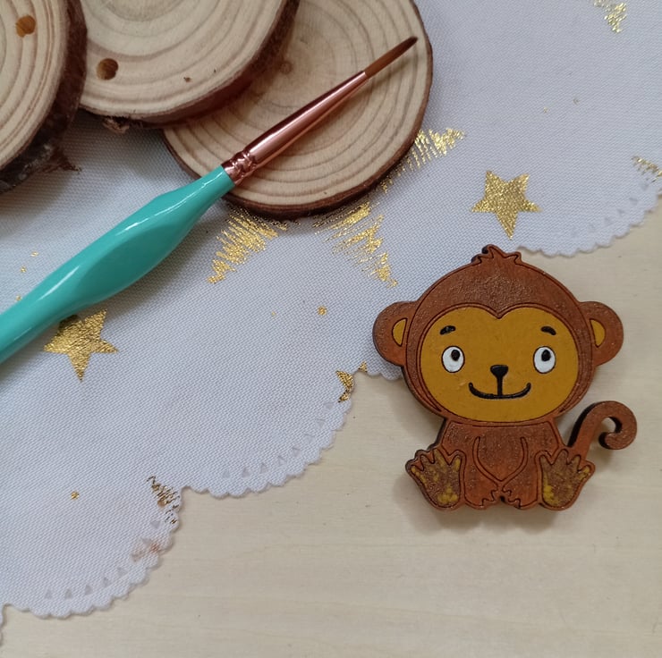 A 4cm tall monkey shaped wooden Fridge Magnet that has been hand painted using acrylics