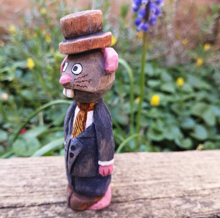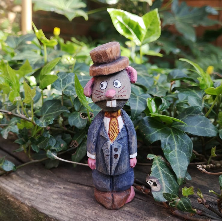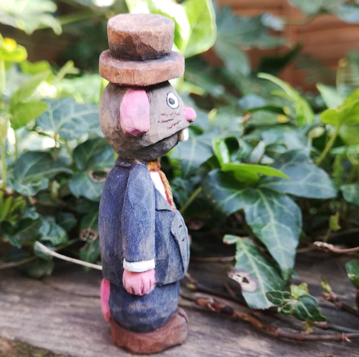 Hand carved, painted and finished wooden Fred the Rat - One of a kind gift!