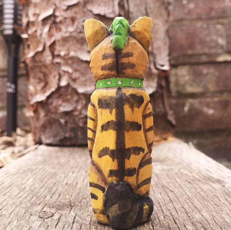Lovingly hand-carved from bass wood and carefully sanded. All carving done by me by hand using a pocket knife, no power tools. The carving and sanding takes several hours. I then paint with watercolour and acrylic. Finally I coat it with Danish oil to protect the wood and the paint, and enhance the colours.
