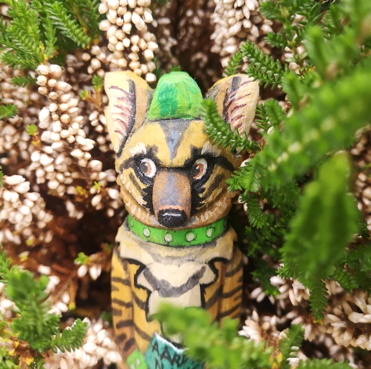 Meet Well aard the Aard Wolf: punk, proud, and carved with bite.