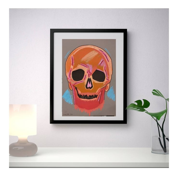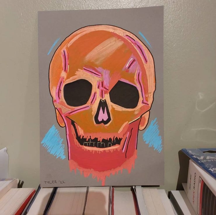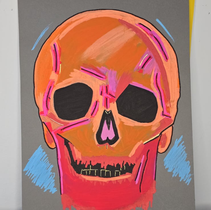 Abstract skull - original abstract acrylic mixed media painting on A4 paper