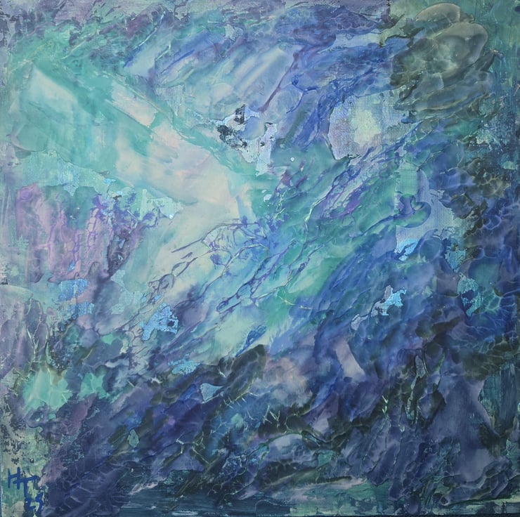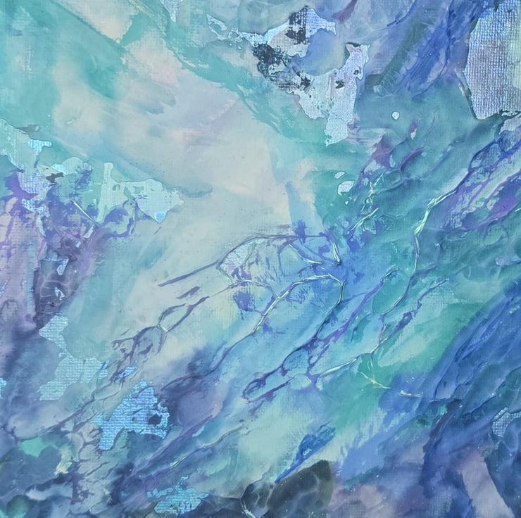 The paints have a beautiful iridescent sheen, creating an ever-changing shift in perception of the piece, depending on the lighting and angles.