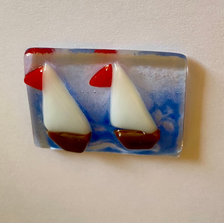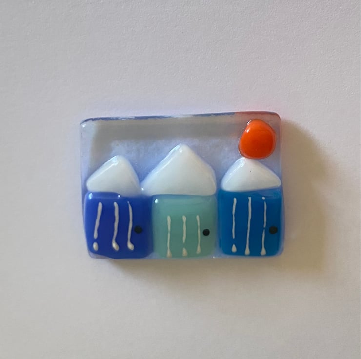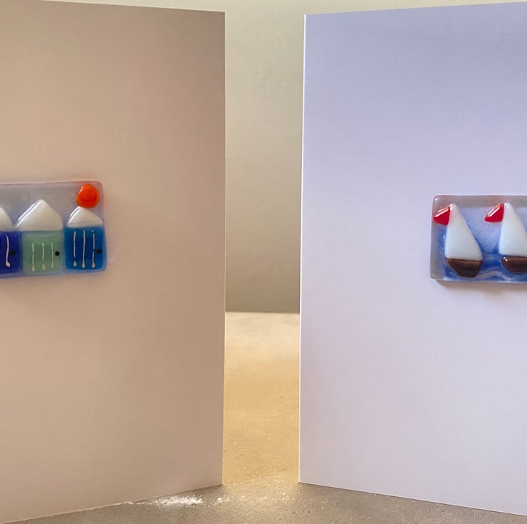 Left blank, this seaside-themed fused glass card could be framed in a little box frame.