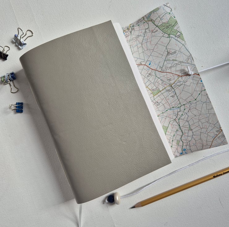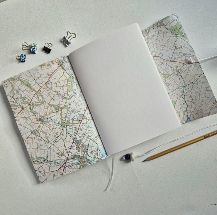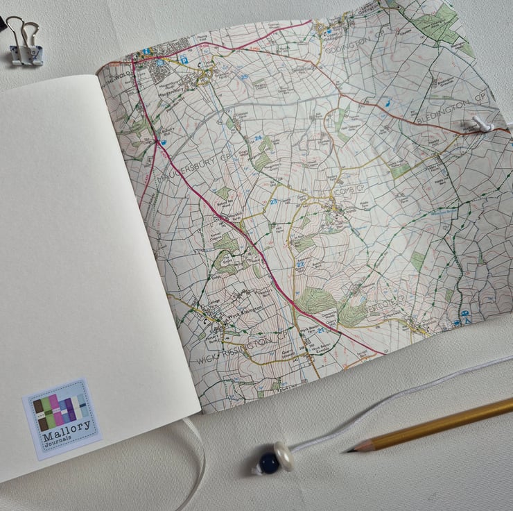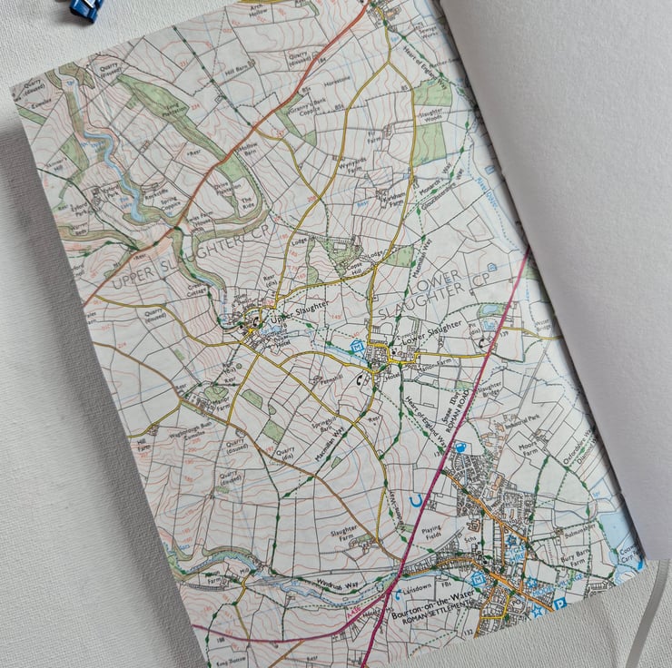 A lovely Map Journal featuring an OS Map of the Cotswold Villages; Bourton on the Water, Upper and Lower Slaughter, Icomb, Bledington etc. Would make a lovely Travel Journal or Sketchbook.