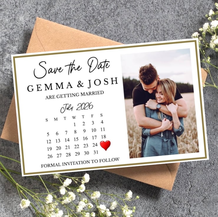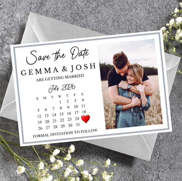 You can personalise the Save the Date with your names and special date, creating a unique and memorable piece for your guests to cherish.