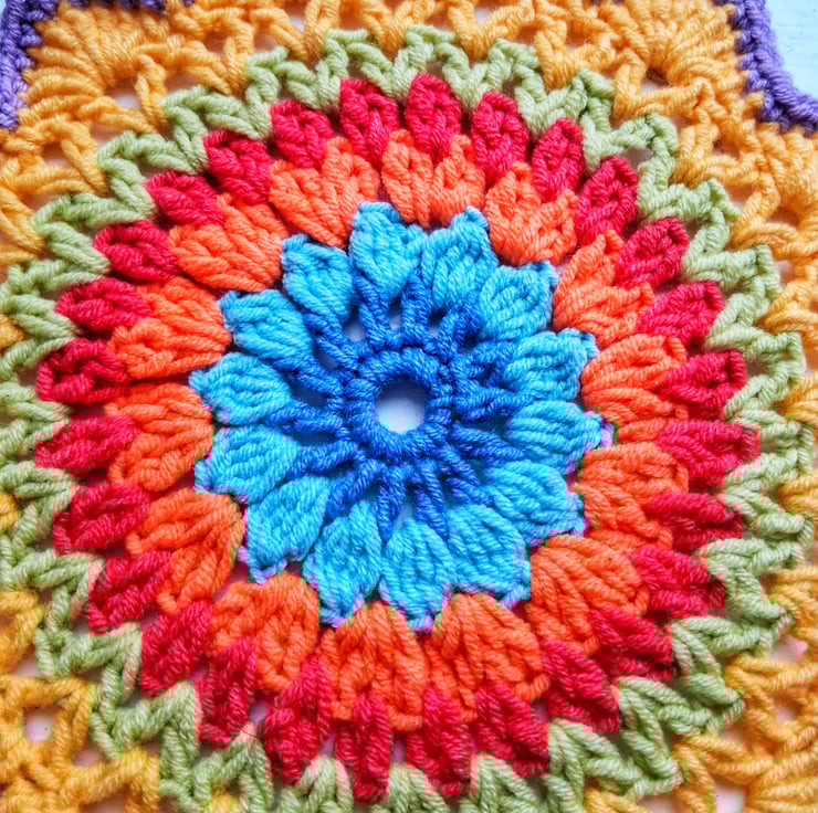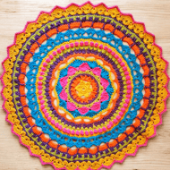 These colourful crochet mandala doilies would brighten any table. Crocheted in a soft cotton blend yarn for ease of wash and colour retention. 7" diameter.
