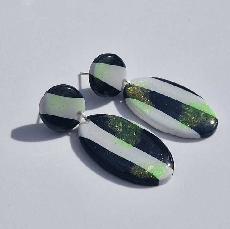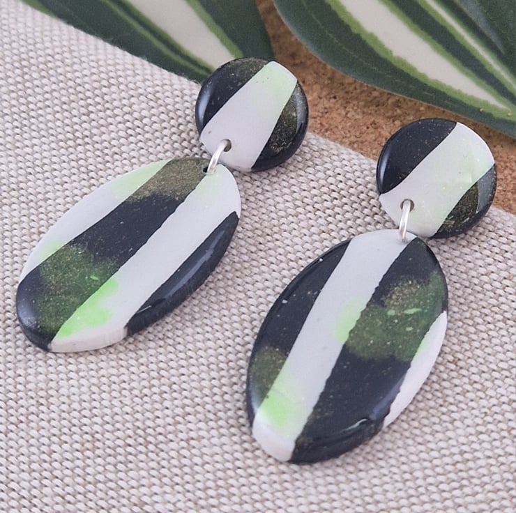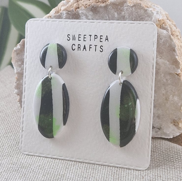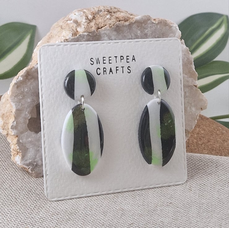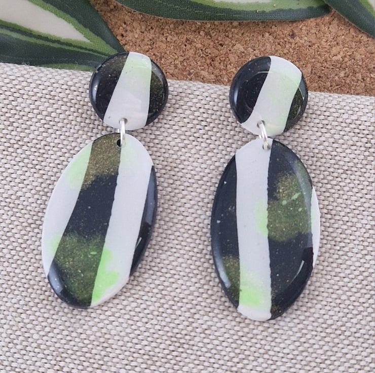 Light weight polymer clay earrings. Approximately 40mm long. Hypoallergenic studs used.