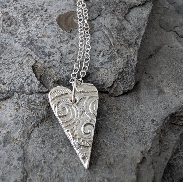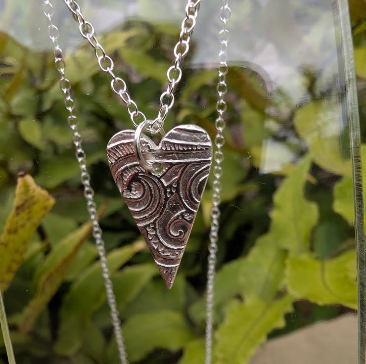 This is a beautifully textured fine silver heart in a "Wild Ocean" Design. The heart is 20mm high and is formed in fine silver (99.99% silver)