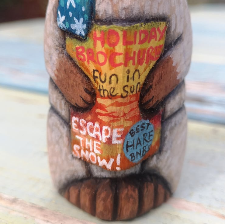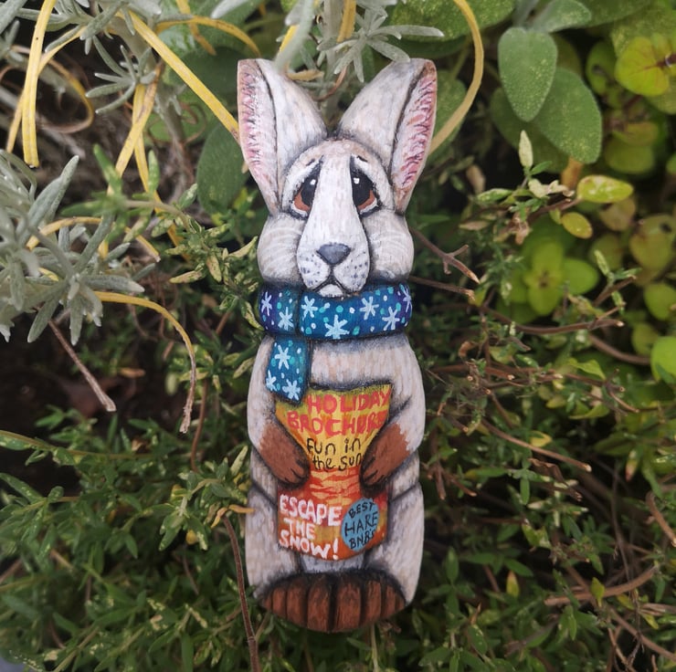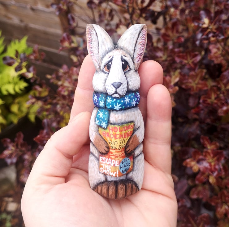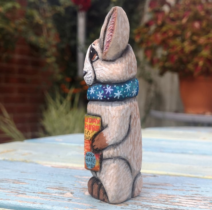Sully has had quite enough of snowdrifts and frozen whiskers. With his scarf wrapped tight and a holiday brochure clutched in paw, he’s plotting a sunny getaway and scouting the Best Hare BnBs for a bit of well-earned warmth. Whether he’s dreaming of sandy burrows or sun-dappled meadows, Sully brings a splash of humour and woodland charm to any space.
