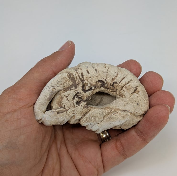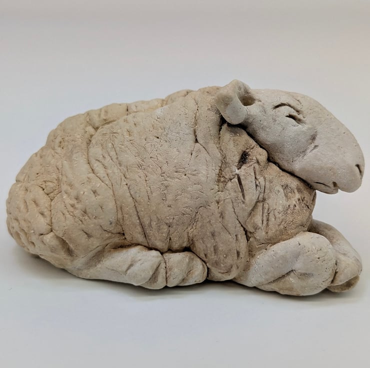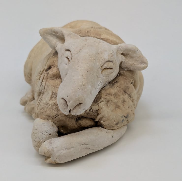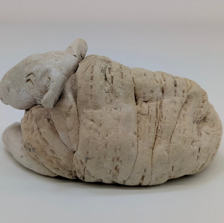 Hand made in stoneware clay, this sleepy sheep measures 7.5 x 4 x 4 cms.