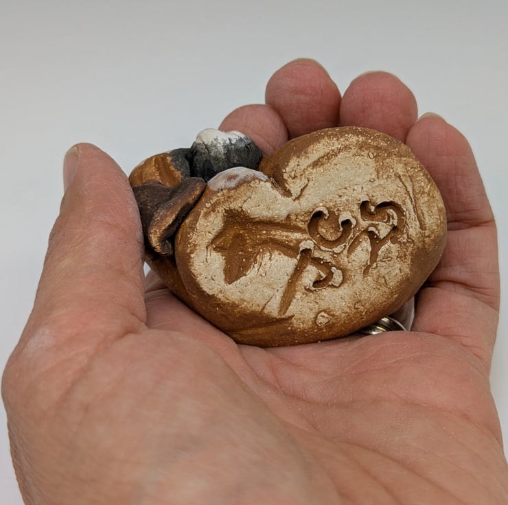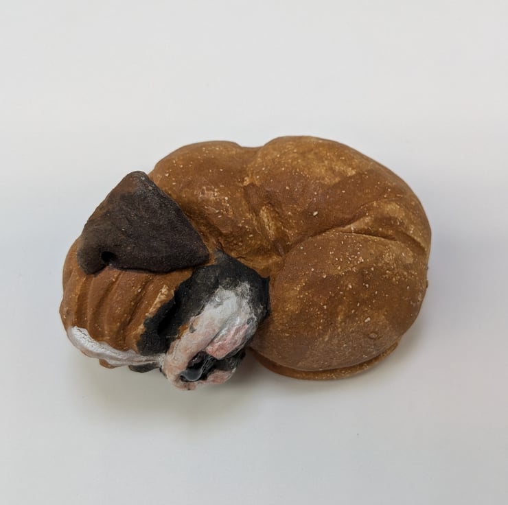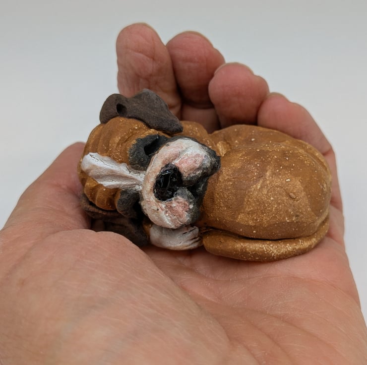 This mini boxer is handmade in stoneware clay and measures 6.5 x 4.5 x 3.5cms.