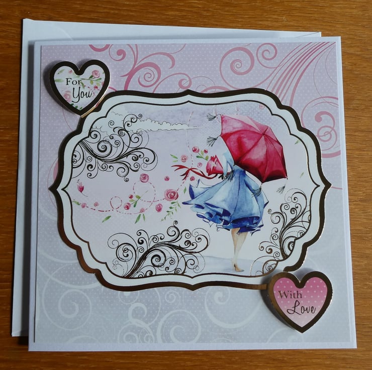 Two heart shaped messages have been added, one in the top left corner with the words For You and one in the bottom right with the words With Love. Both messages have been slightly raised from the card front with foam pads.