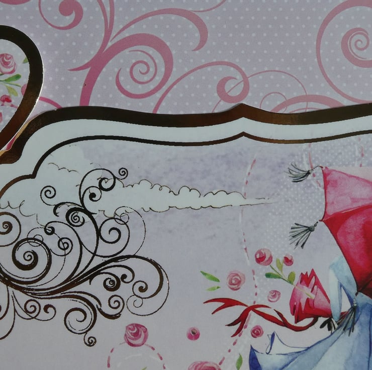 The card measures approximately 14.8cm square and is supplied with a white envelope and inside a clear poly bag. It will be posted in a board backed envelope for protection.
