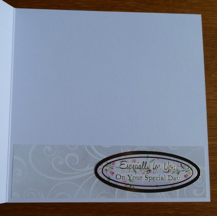 Along the bottom edge of the Inside of the card is a strip of matching patterned paper with a message which reads Especially For You On Your Special Day.