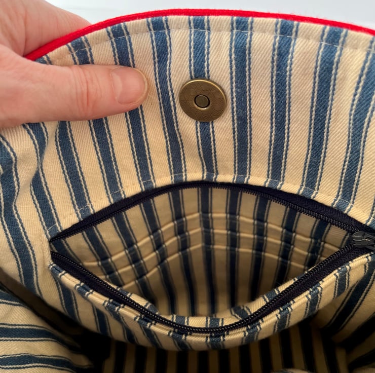 I’ve always loved the coastal colours of red, blue and white, which remind me of the sea and the spirit of adventure. Lighthouses have a special place in my heart – their quiet strength and purpose, guiding lost sailors safely to shore. This crossbody bag combines those inspirations in a practical, everyday accessory that carries a touch of the sea wherever you go.