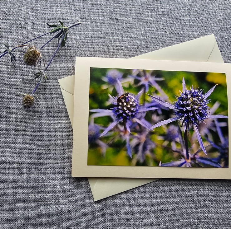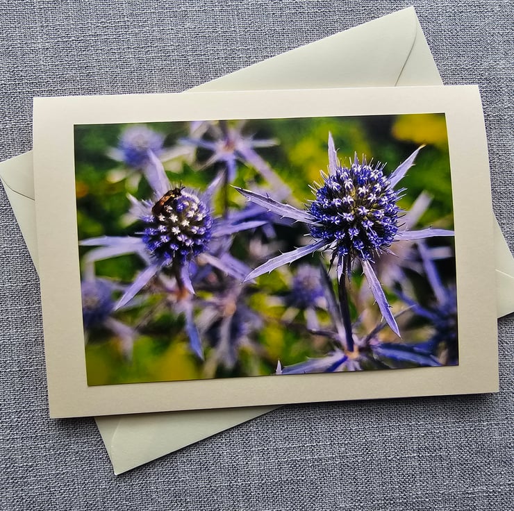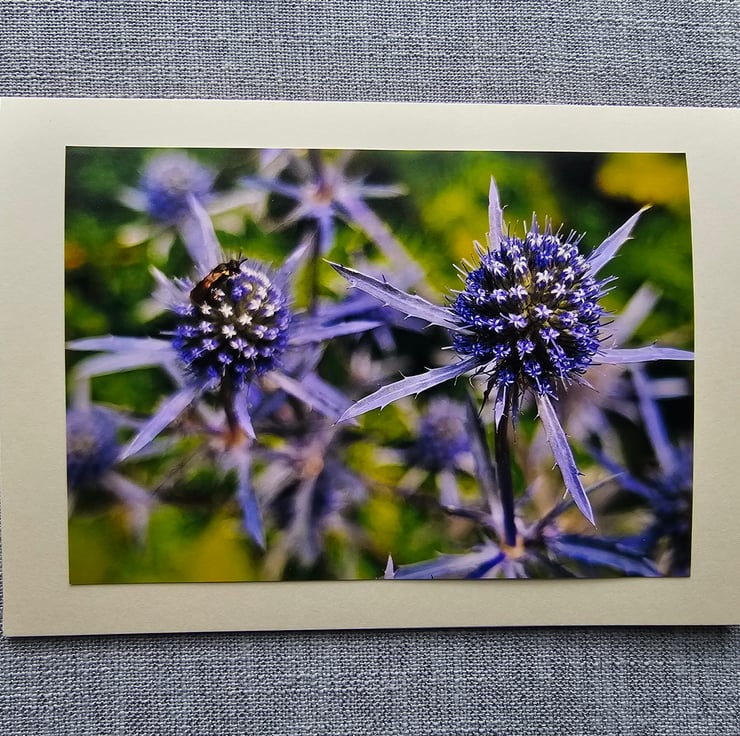 Sea Holly Large Photographic Card Size 7" x 5" (18cm x 13cm)