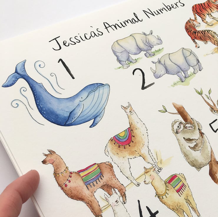 Using high quality 210gsm off-white Fine Art paper, 'My Animal Numbers' is printed using archival, colour-fast inks so to ensure the colours keep vibrant and your print stays beautiful. The paper has a very slight texture to it which gives a lovely similarity to watercolour paper.