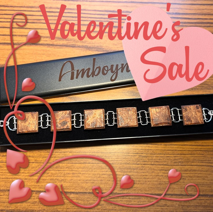 Unique - Rustic Amboyna Wood & Sterling Silver Bracelet On Valentine's Offer