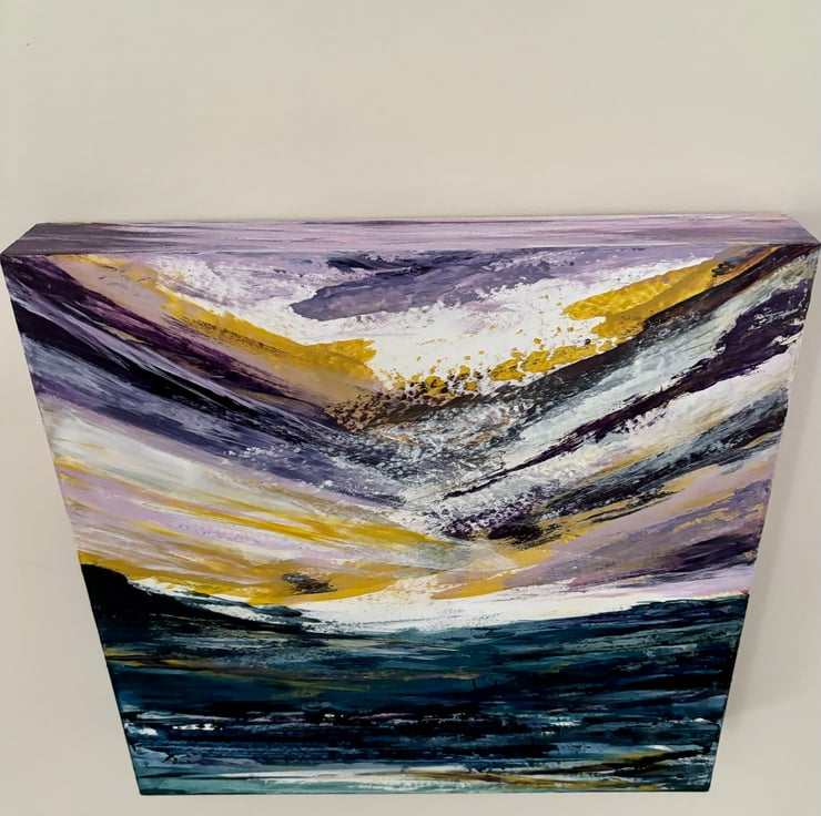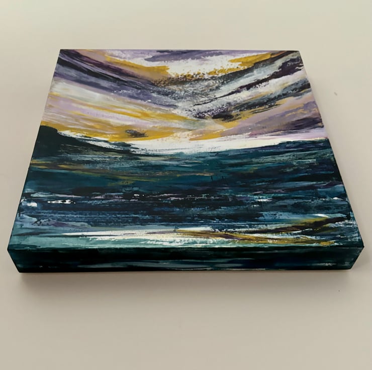 12” x 12” (30cm x 30cm) cradled wooden panel original acrylic seascape art. Depth of panel is 3.8cm/1.49". Signed on the back.