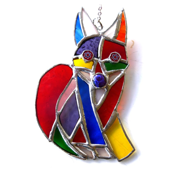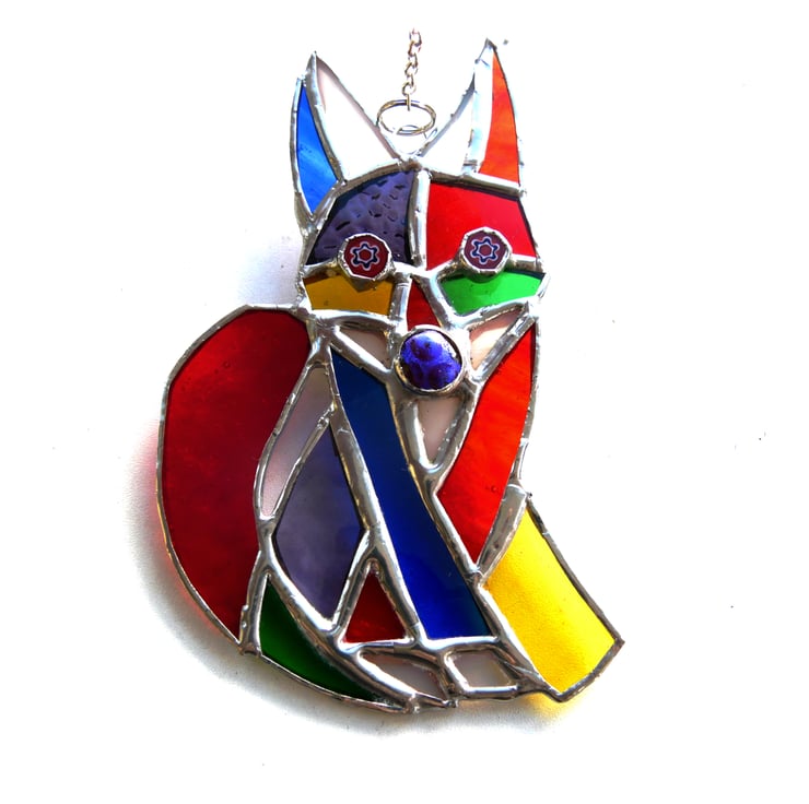 A stained glass suncatcher made using the Tiffany copper foil technique.