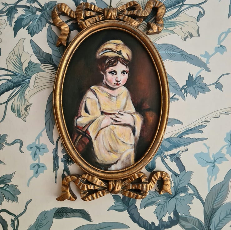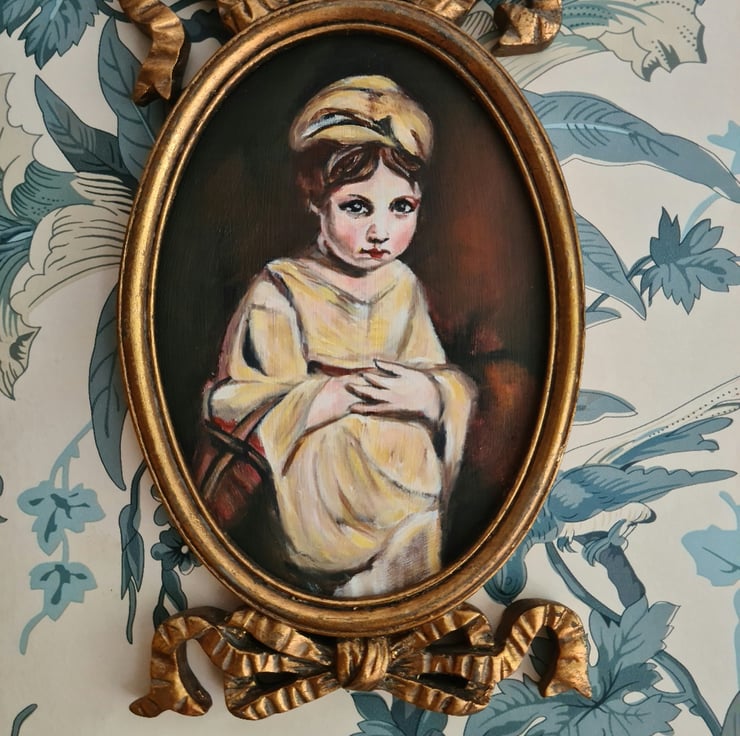 I saw this painting Strawberry girl by Joshua Reynolds and wanted to recreate it in this lovely frame .