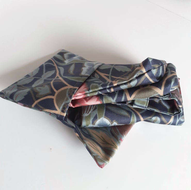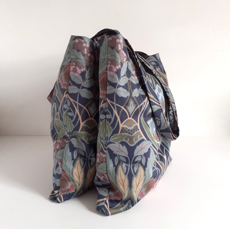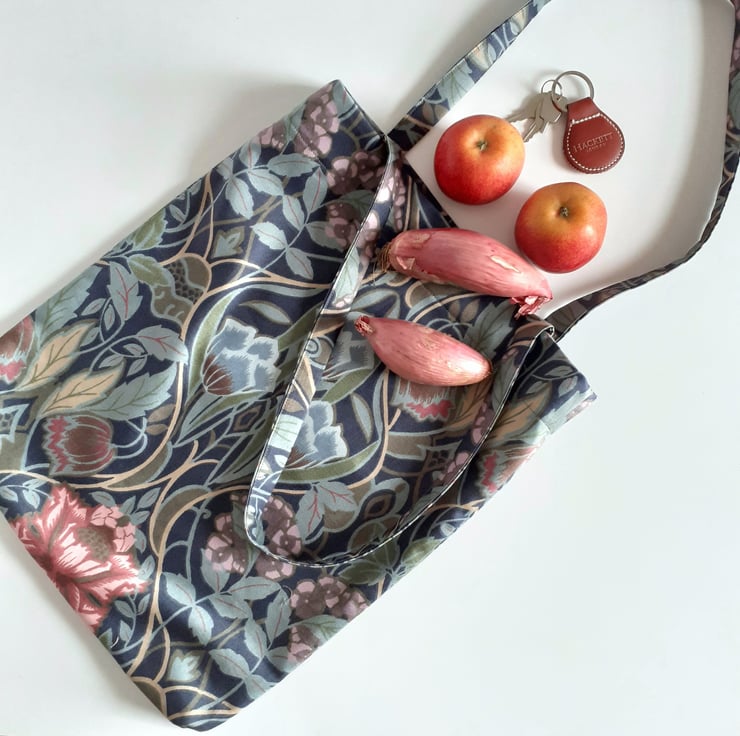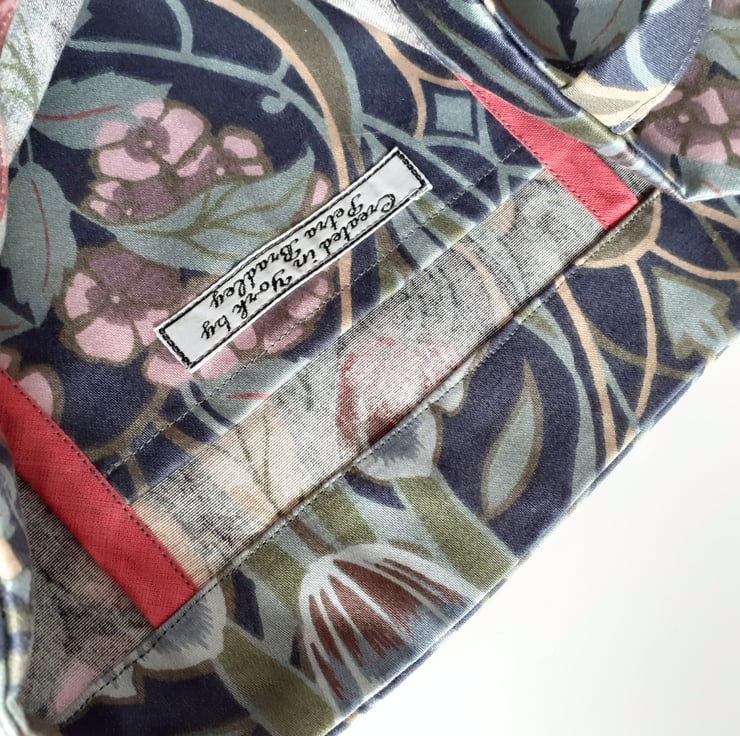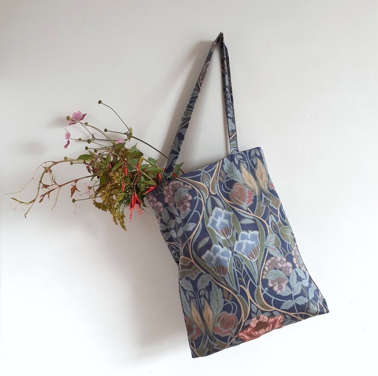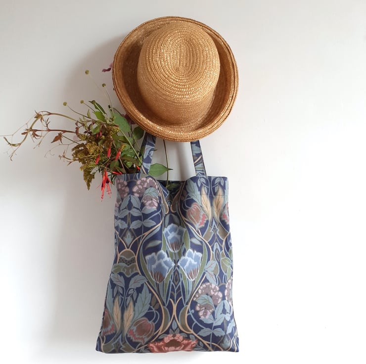 I have used it to make a simple but sturdy unlined tote or shopping bag which could also be useful as a book bag. It has a small inside pocket for your phone and keys, and will fold up into its own little pouch, ready for all those unexpected buys when you want to avoid plastic bags. It would make a great going to uni present, or for anyone who loves arts and crafts design.