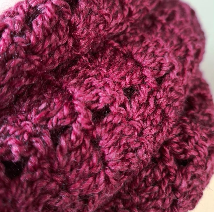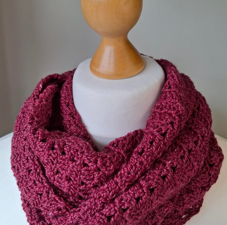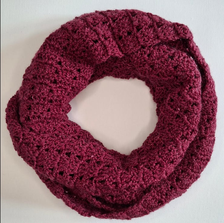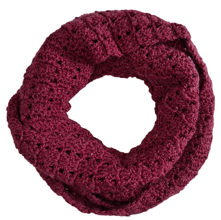 Lacy infinity scarves are crocheted in 4ply yarn.