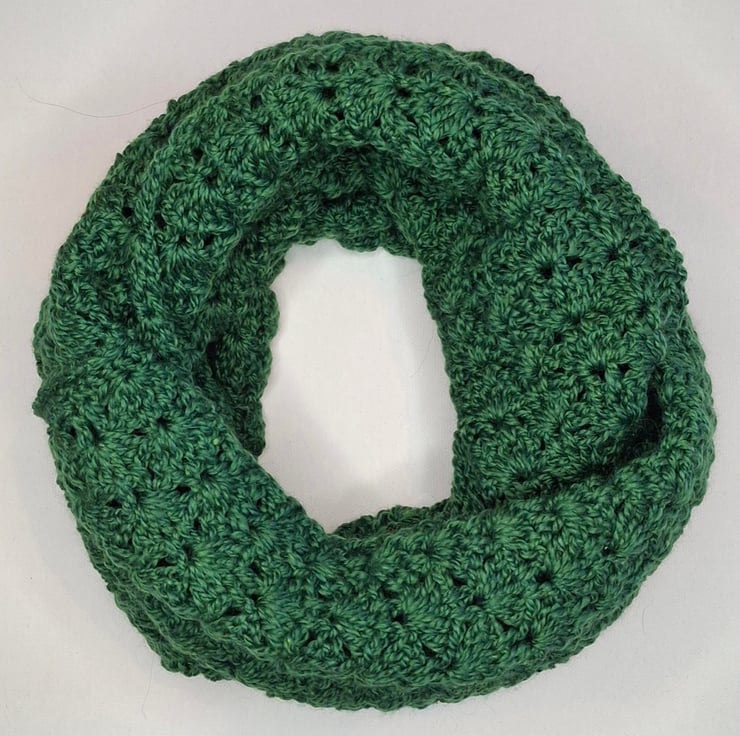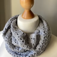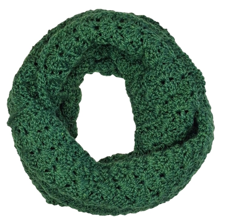 Lacy infinity scarves are crocheted in 4ply yarn.