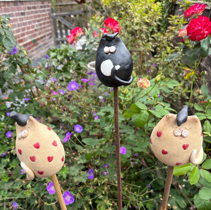Black and white cat to sit on top of your garden cane, helping to prevent accidents while providing all round interest to your garden. Made from high fired stoneware clay this is completely frost proof and happy to stay outside in the garden all year round.