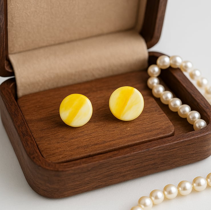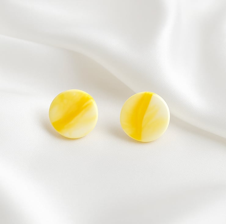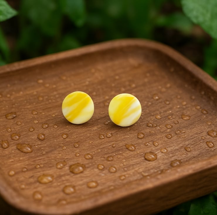 Delicate yet playful, these handcrafted polymer clay earrings feature a soft white base with gentle yellow wave accents in a subtle dot shape. Lightweight and elegant, they’re the perfect finishing touch for a breezy sundress or a chic evening outfit. Fresh, feminine, and full of sunshine vibes.