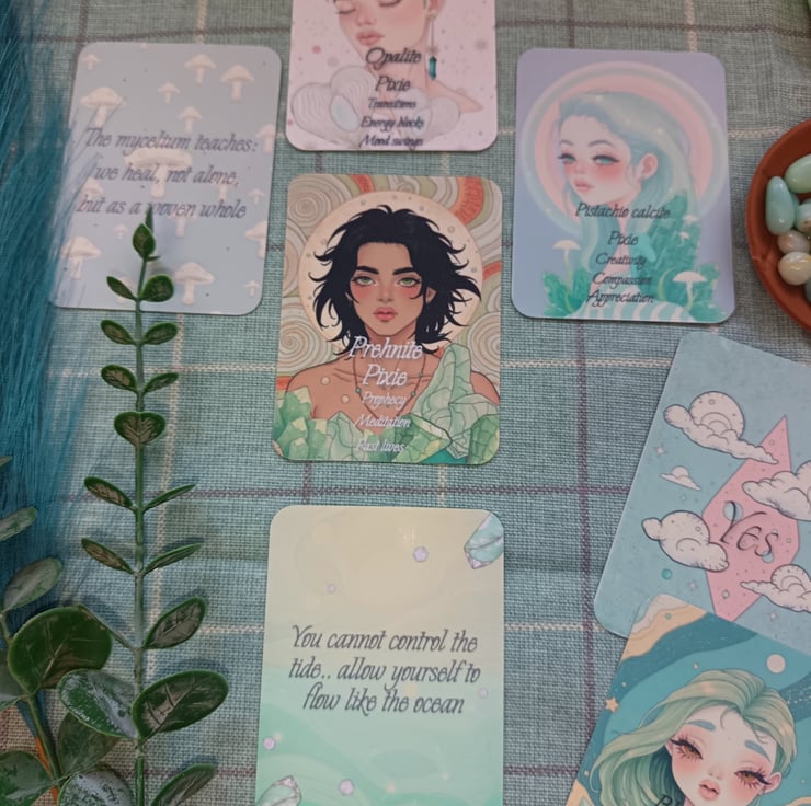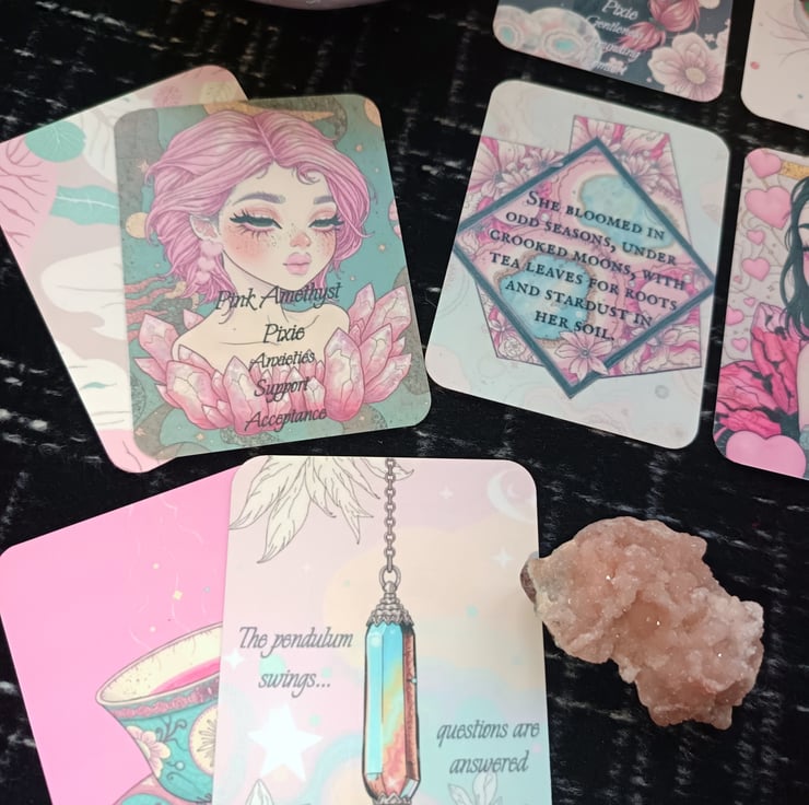 This beautiful Oracle deck has been lovingly created from our own studio and designed by an international Psychic. It is perfect for beginners and professionals alike with a wide selection of main character pixie cards, pointer and messenger cards to give your readings wonderful clarity. It also has 4 colourful blank cards so you can write your own meanings or use as a daily affirmation card. It comes with a guidebook and is stored in these durable cotton bags and features some great features;