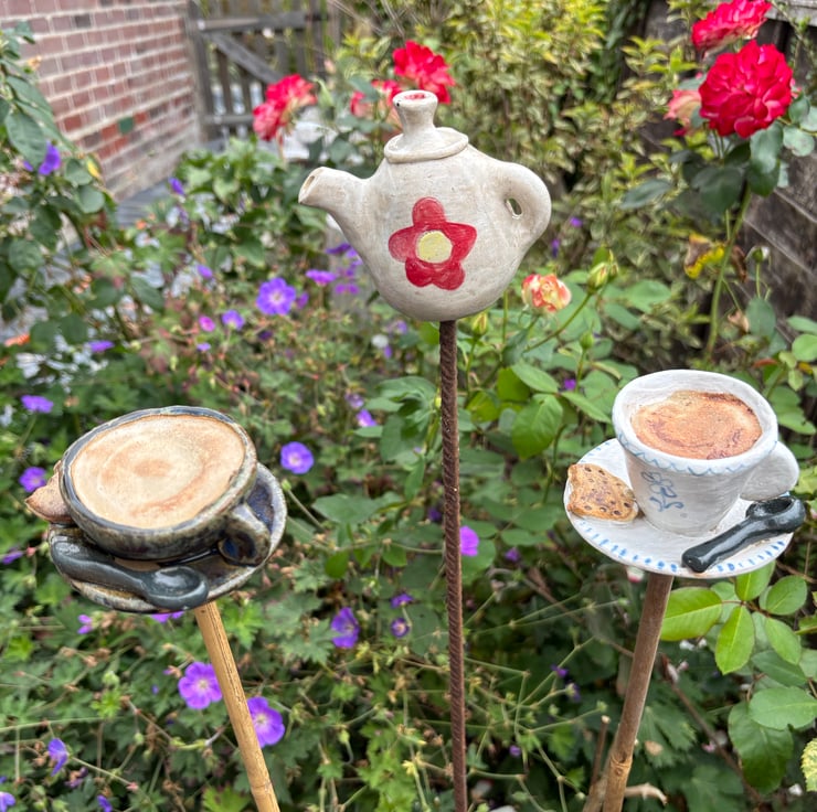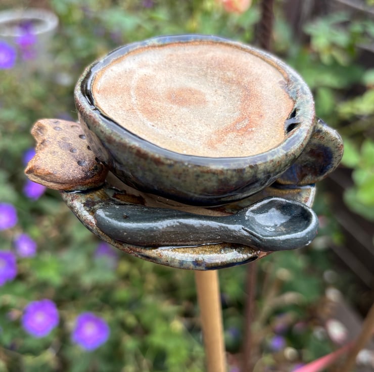 Cappuccino anybody? This quirky topper will sit on top of your garden cane preventing accidents whilst adding a little novelty to your borders. Made from high fired stoneware, it’s happy to spend all winter outside in all weathers, although the coffee might get cold!