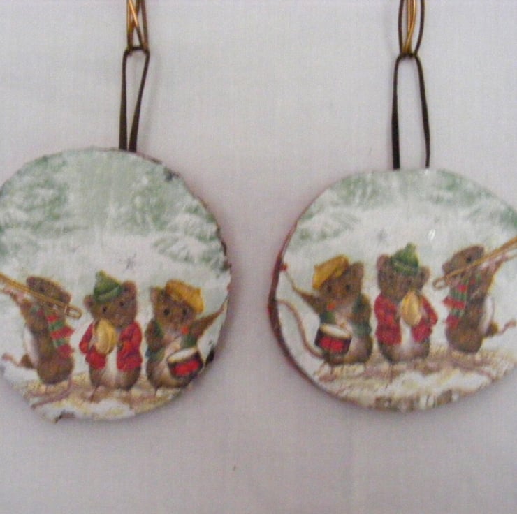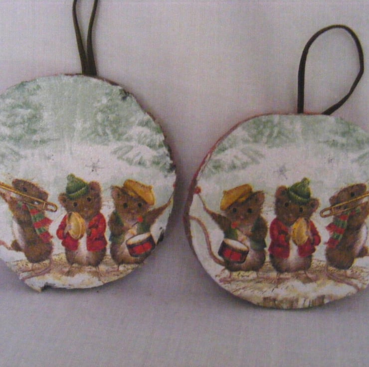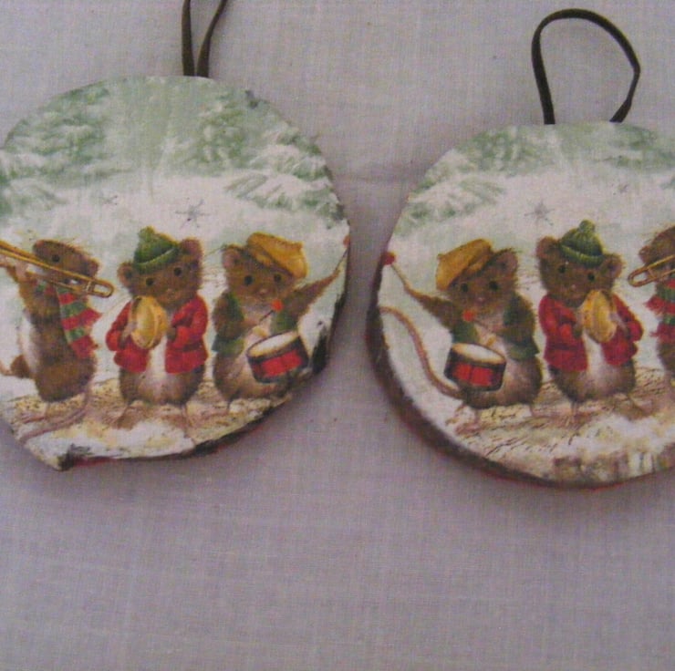 I've handmade these lovely Christmas decorations using, log slices, napkins, varnish, felt and faux suede.