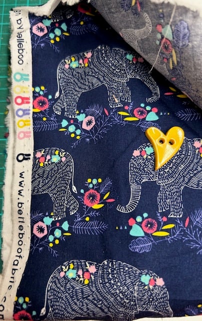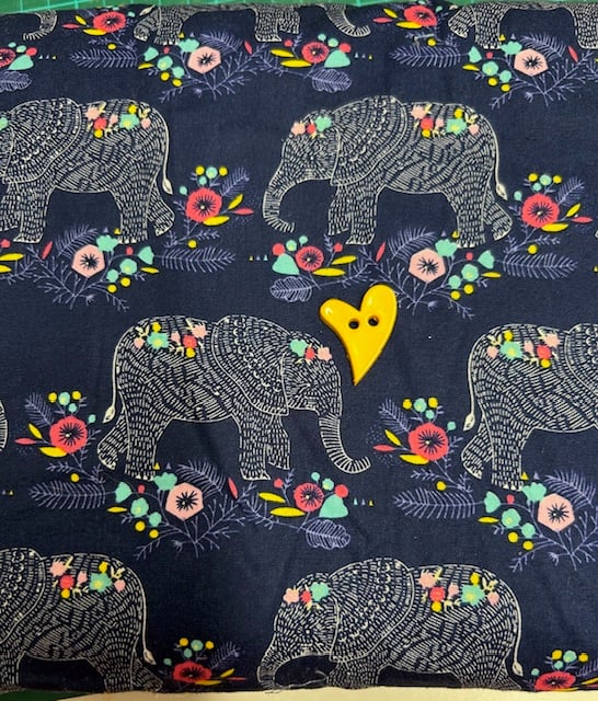 This perfect deep navy elephant fabric with colourful cerise pink and yellow flowers for all your quilting needs.