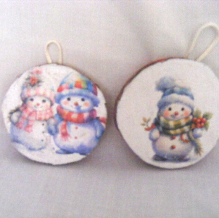 Handmade Set of 2 Christmas Snowmen wall Decorations.