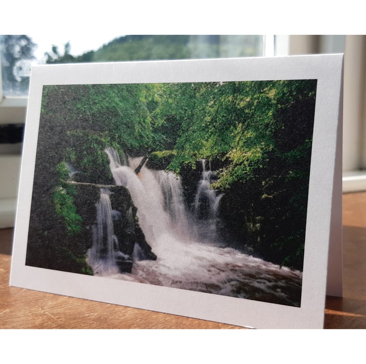 Blank inside for your own message, a perfect card for someone that loves waterfalls, or perhaps from the Welsh Marches. Printed on 340gsm sustainably sourced card and a satin finish on the image. Envelope included.