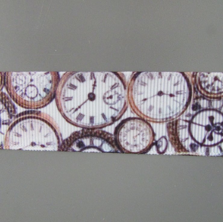 2.5CM STEAMPUNK CLOCKS GROSGRAIN RIBBON SOLD BY THE METRE.