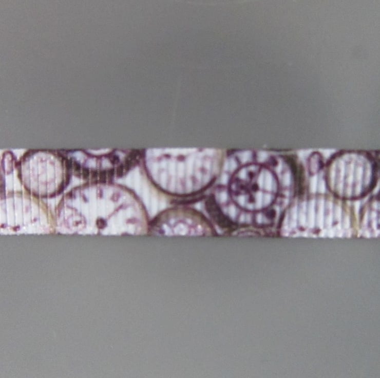 1CM STEAMPUNK CLOCKS GROSGRAIN RIBBON SOLD BY THE METRE.