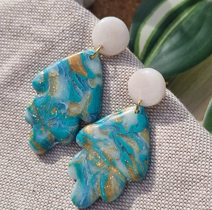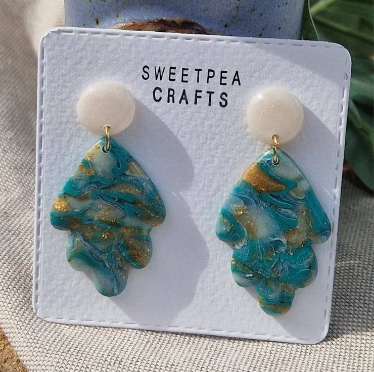 Handmade with care, these dangly earrings are crafted from lightweight polymer clay, making them comfortable enough to wear all day. Each pair is unique , no two are exactly the same , giving you a truly one-of-a-kind accessory. Approximately 40mm long.