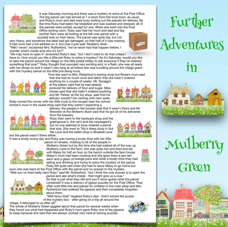 There are other children in Maisy’s class at school - Violet, Billy with his pet rabbit, Amber, Tilly, Rosie and her kittens, Amelia, Ruby, Marigold, Bobby with Max the dog, and the twins Oliver and Olivia, who have a puppy called Oscar. The dolls are all 26cm tall and baby Daisy is 16cm. Maisy and Mo love nothing more than having adventures with their friends. You can read about their adventures on my Facebook and Instagram pages - Maisy Muffin Rag Dolls and on my Mulberry Green Pinterest boards.