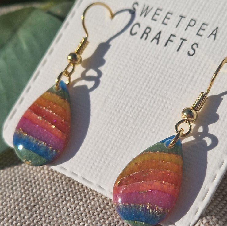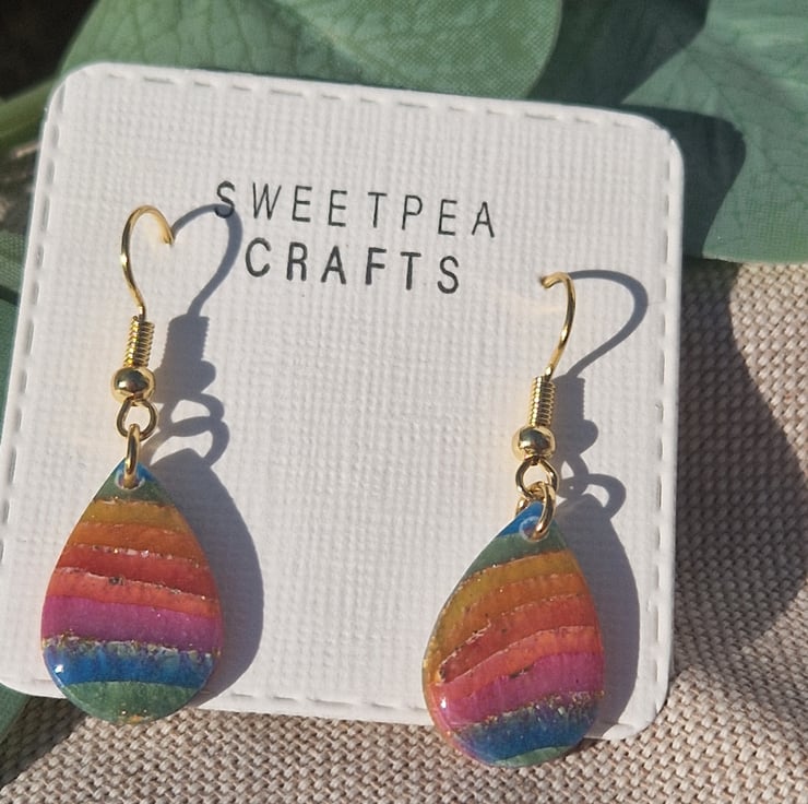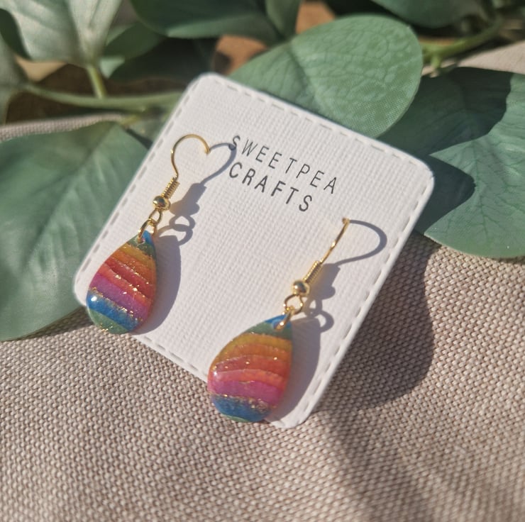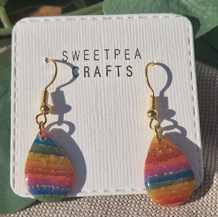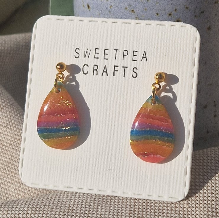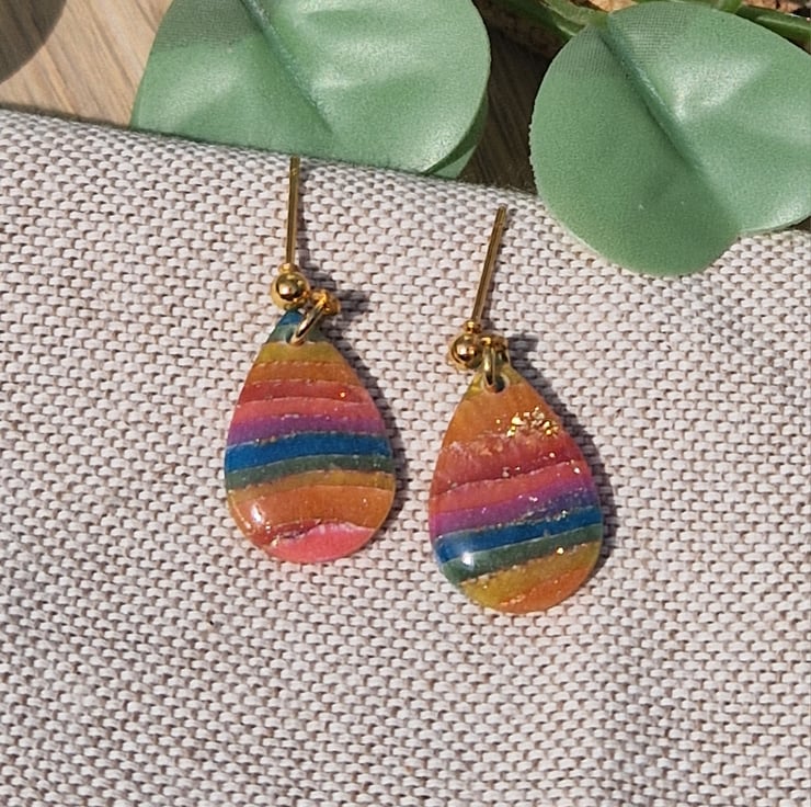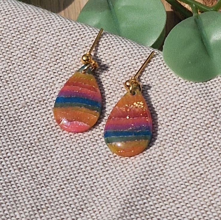 Handmade with care, these small teardrop earrings are crafted from lightweight polymer clay, making them comfortable enough to wear all day. Each pair is unique, no two are exactly the same, giving you a truly one-of-a-kind accessory. Approximately 35mm long. Hypoallergenic hooks.