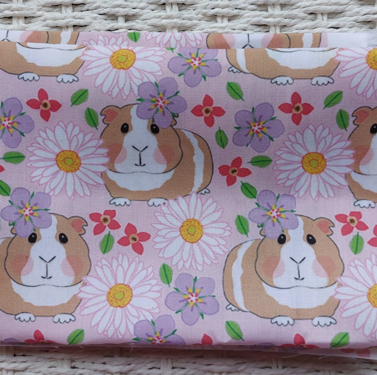 Fat Quarter of Pink Flowers Guinea Pig Fabric