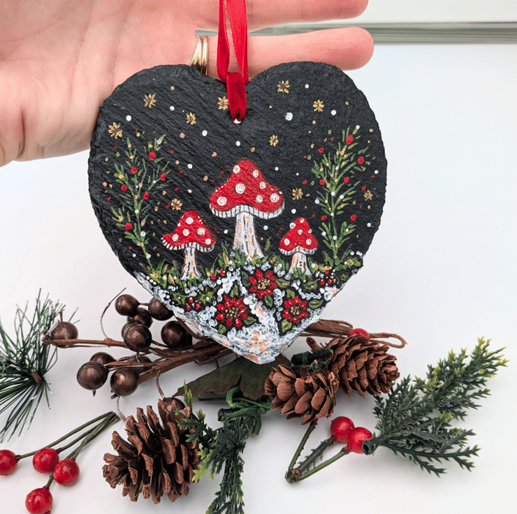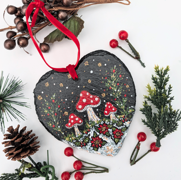 This beautiful hand-painted Toadstool slate heart would make a lovely, unique gift for any toadstool lover or as a treat for yourself. Lovely to decorate your home for Christmas or all year round.