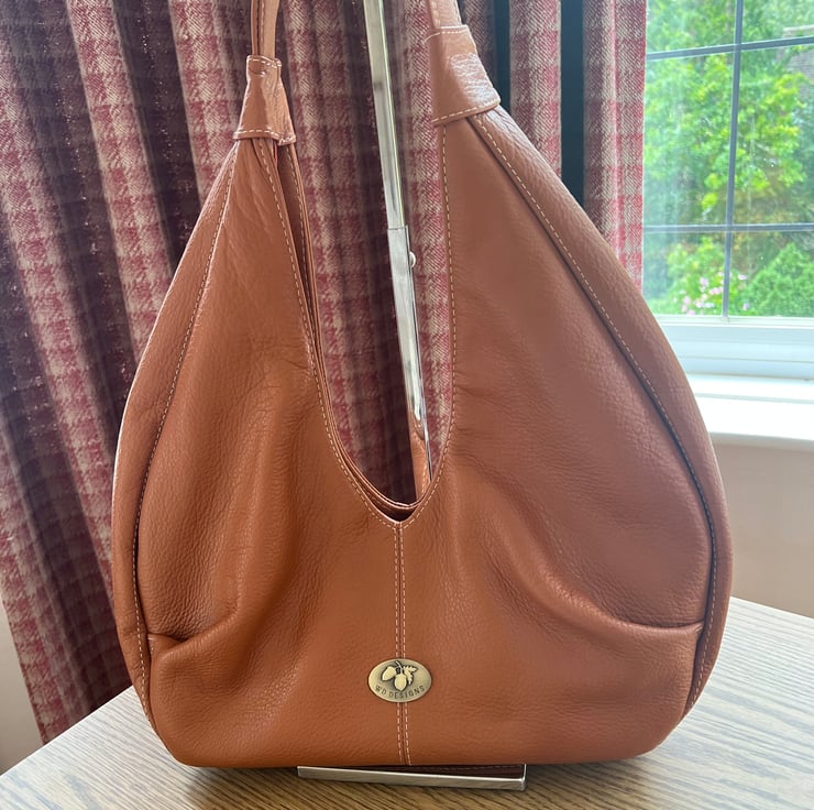 Handmade by me using beautifully soft Italian leather . This bag is quite a statement piece. It’s large and you could sneak a bottle of wine in the sides without it being spotted! The depth in the centre measures 6”