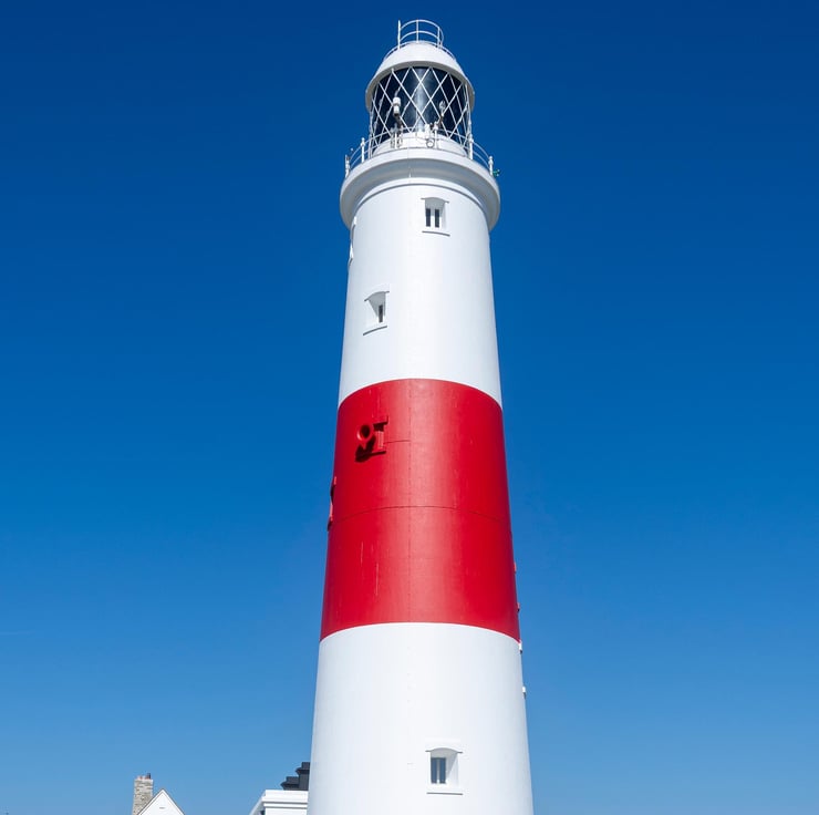 Portland Bill is famous for this lighthouse. 155 steps will take you to the lantern level of the 41 metre high Portland Bill lighthouse. As a major tourist attraction its paint is kept rather pristine.