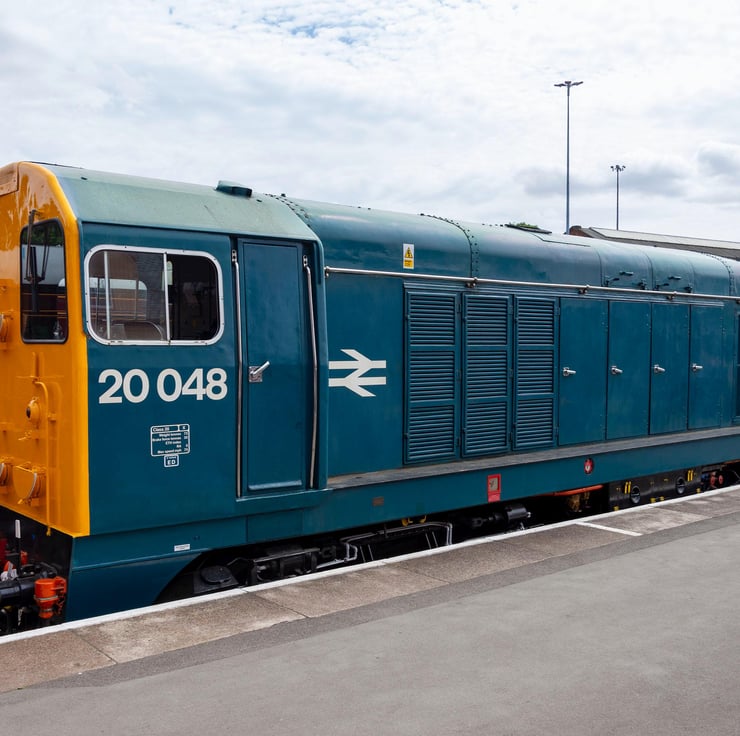 As it lacked the capacity to provide train heating these were not suited to passenger use. 20 048 is a type 20 diesel electric locomotive, also known as an English Electric type 1. Its comparatively low weight and power restricted its use to less demanding freight roles.